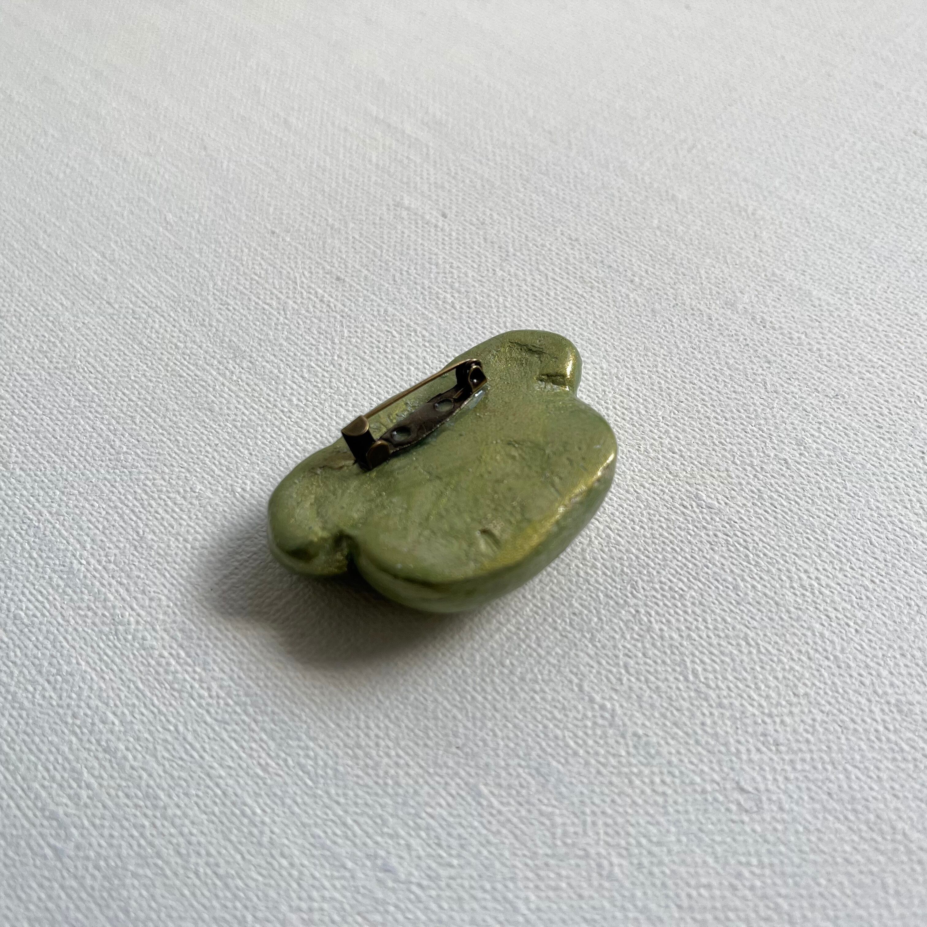 艶のある、滑らかな質感の陶器ブローチ。